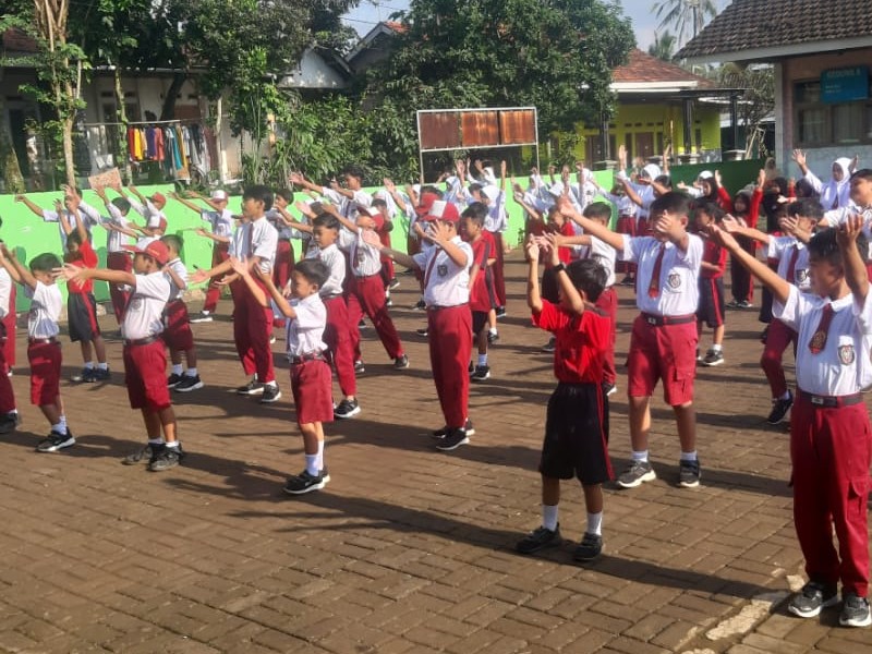 pertama adalah melakukan kegiatan senam pagi. kegiatan ini dilakukan pada hari Jum'at tanggal